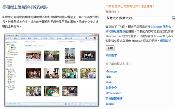 windows live 影像中心 下載位置 http://download.live.com/photogallery